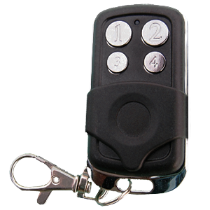 Čtyřkanálový dálkový ovladač (433.92 Mhz) s plovoucím kódem, s výsuvnou bezpečnostní krytkou a karabinkou pro řídící jednotky pohonů A1, A2 a také pro dálkově ovládaný modul UNI 3CH.
