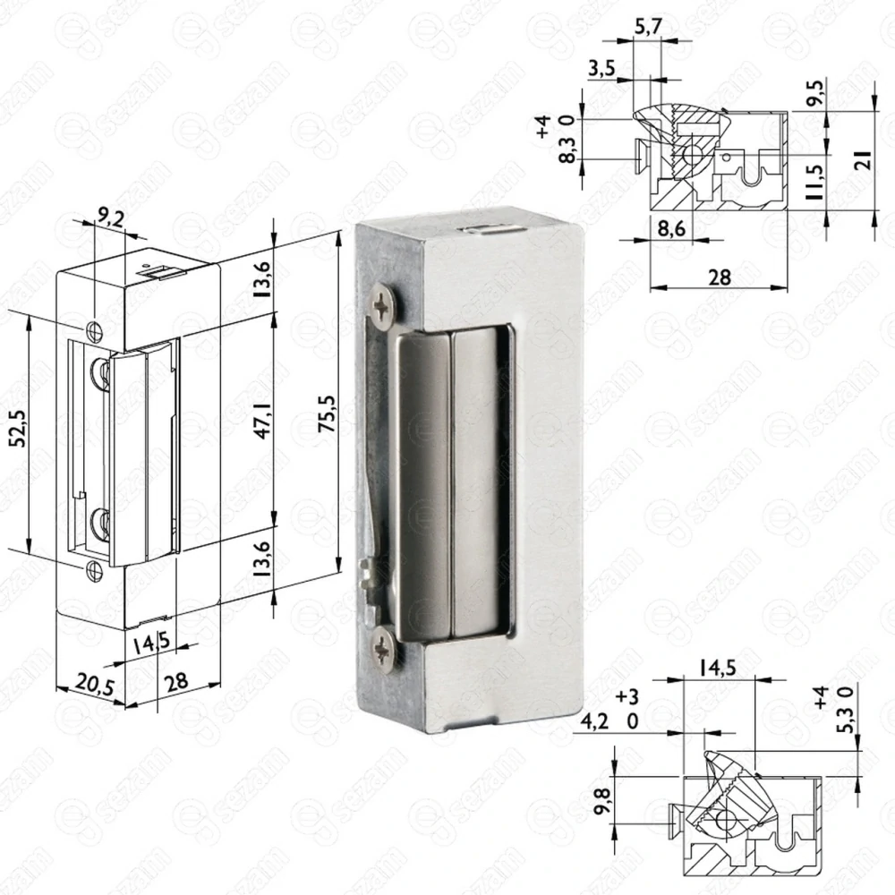 DORCAS 45N412 elektrický otvírač standardní „N“, nastavitelná západka až o 4 mm